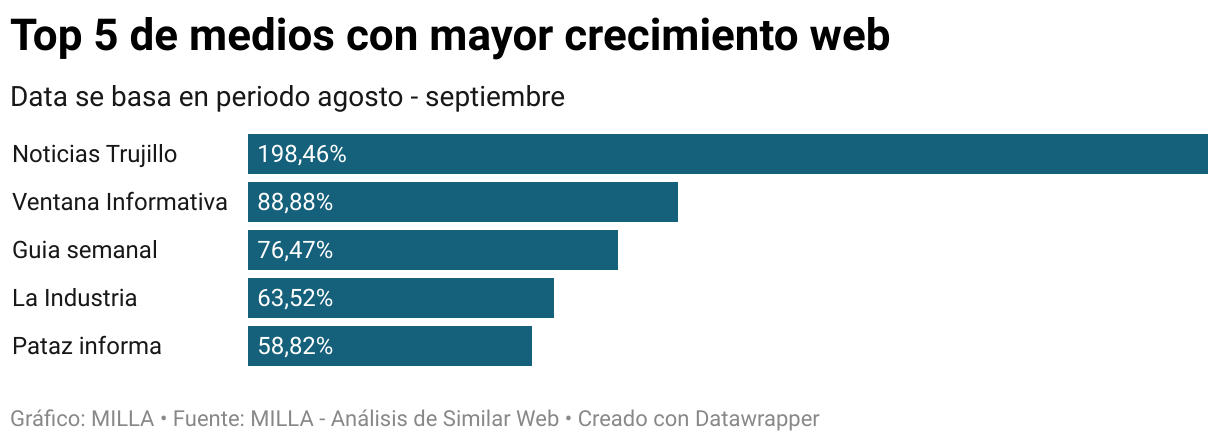 En el último periodo de agosto a septiembre del 2023, algunos medios de comunicación de La Libertad reportaron un gran crecimiento en su tráfico online, según el análisis de MILLA.